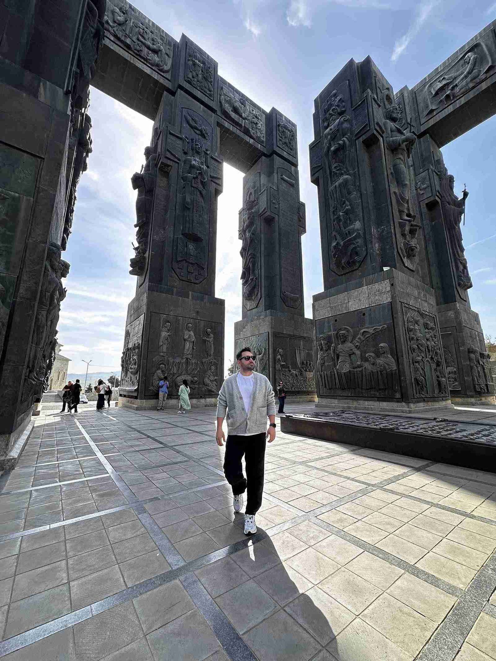 Sovyet heykeltıraş Zurab Tsereteli tarafından 1985’te başlanan devasa anıt. 16 dev sütun üzerinde Gürcü kralları ve İncil sahneleri işlenmiştir. Çok az turistin bildiği ama görsel olarak en güçlü, en epik noktalardan biridir.